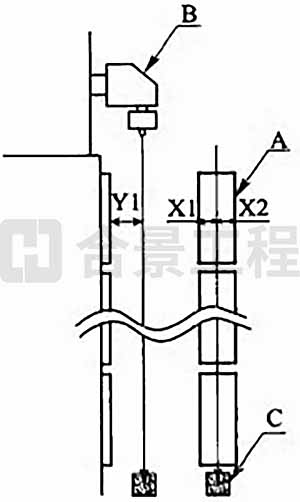 圖9.4.1 拉絲爐中心垂線(xiàn)檢測(cè)示意圖